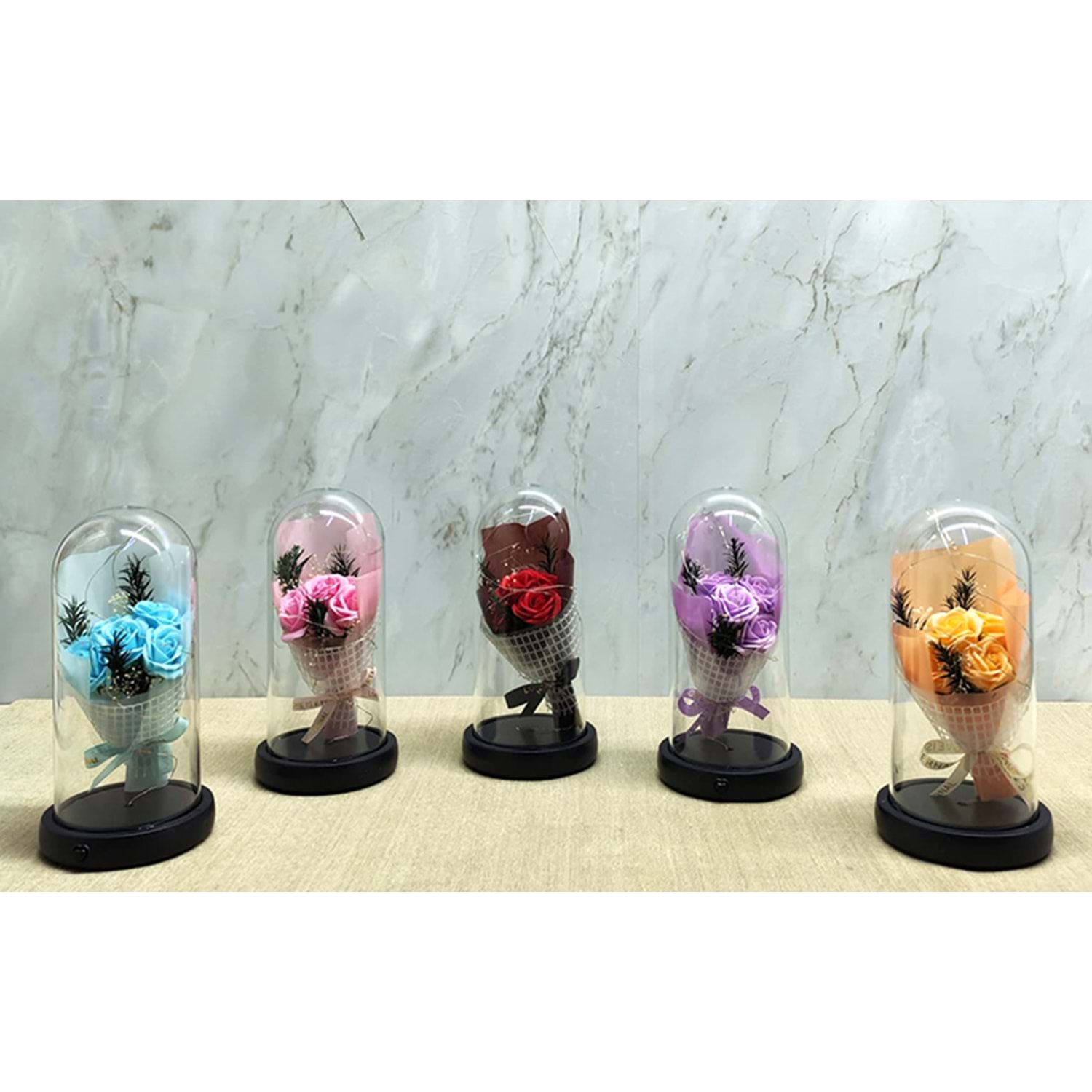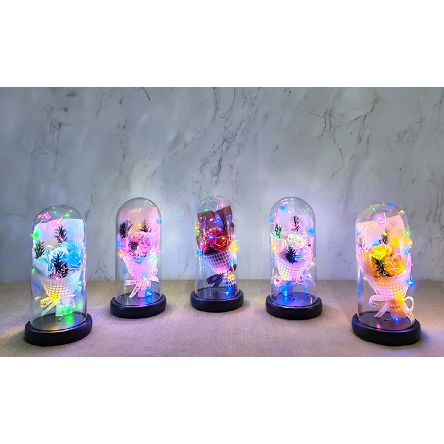 Işıklı Müzikli Fanus içinde Gül Buketi Alk5003 Ürün Ölçüleri; 21*11 Cm