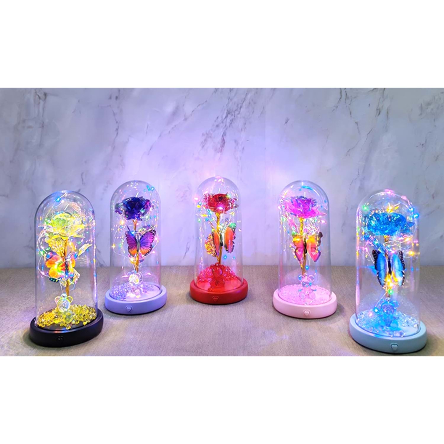 Işıklı Müzikli Romantik Kelebekli Fanus içinde Gül Alk5000 Ürün Ölçüleri; 21*11 Cm